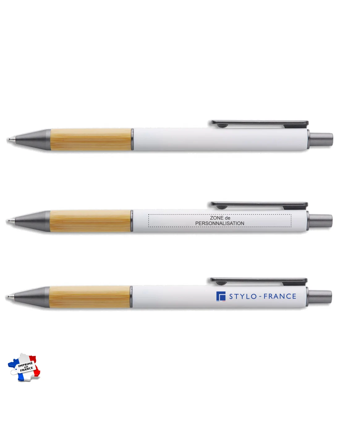 Stylo personnalisé à bille avec bambou - Touché gomme - Nalona