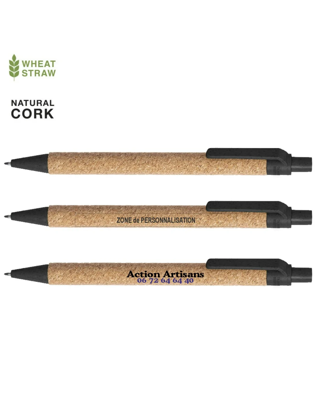 Disponible dans une large gamme de couleurs, à l’encre bleue. Insigne de paille de blé sur le dessus du stylo.