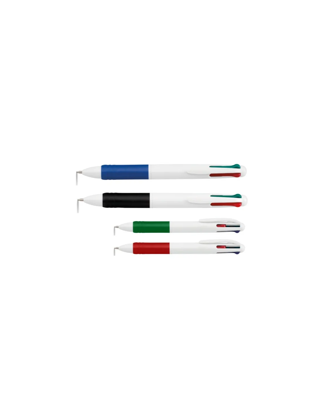 Stylo à bille 4 couleurs OCTUS un vrai 4 en 1, stylo ouverture 4 poussoirs, corps ABS blanc, clip couleur blanc, grip antidérapant de couleur. Il écrit en bleu, rouge, vert et noir. Son grip antidérapant, son corps en abs blanc, idéal pour réaliser votre personnalisation en quadri (en couleur) en fera un vrai objet publicitaire.