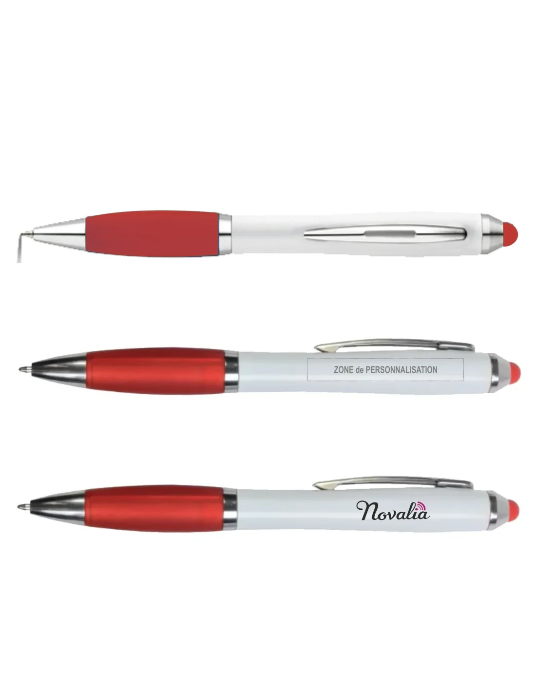 Conçu pour un usage quotidien, il est équipé d’un embout tactile compatible écrans, parfaitement assorti à la zone de grip antidérapante pour une prise en main agréable. Un véritable stylo publicitaire 2-en-1, pratique et tendance.